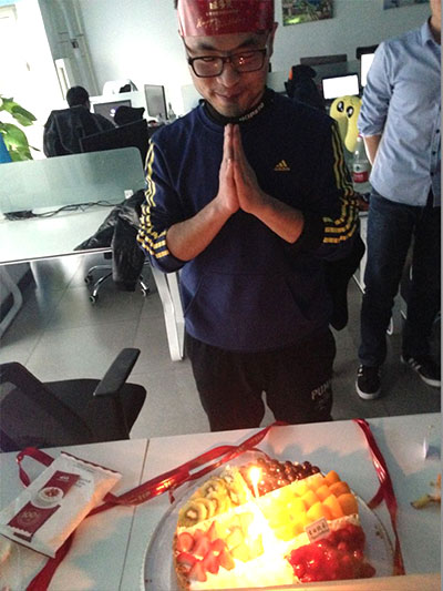 接下來“傳統(tǒng)生日會”照例為12月份過生日的同事點燃蠟燭(本月為兩位天坦伙伴),唱起祝福的生日歌,分享香甜可口的蛋糕,頒發(fā)“功夫熊貓”,這可是真正的功夫熊貓,在集齊24式功夫熊貓的同事,可以換到房子的鑰匙,這也是“壽星”最大的幸運,同時也是為了激勵天坦人勇往拼搏、直線進取設(shè)置的最大獎項。